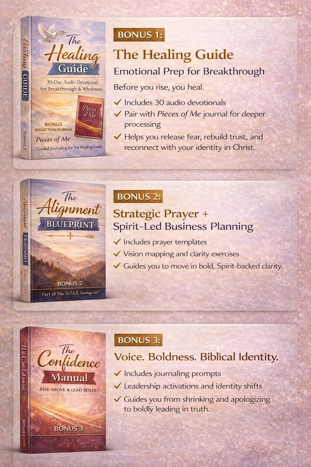 The S.O.A.R Strategy Set was created for Christian women like you who want to hear God Clearly, build boldly and stop circling their calling.